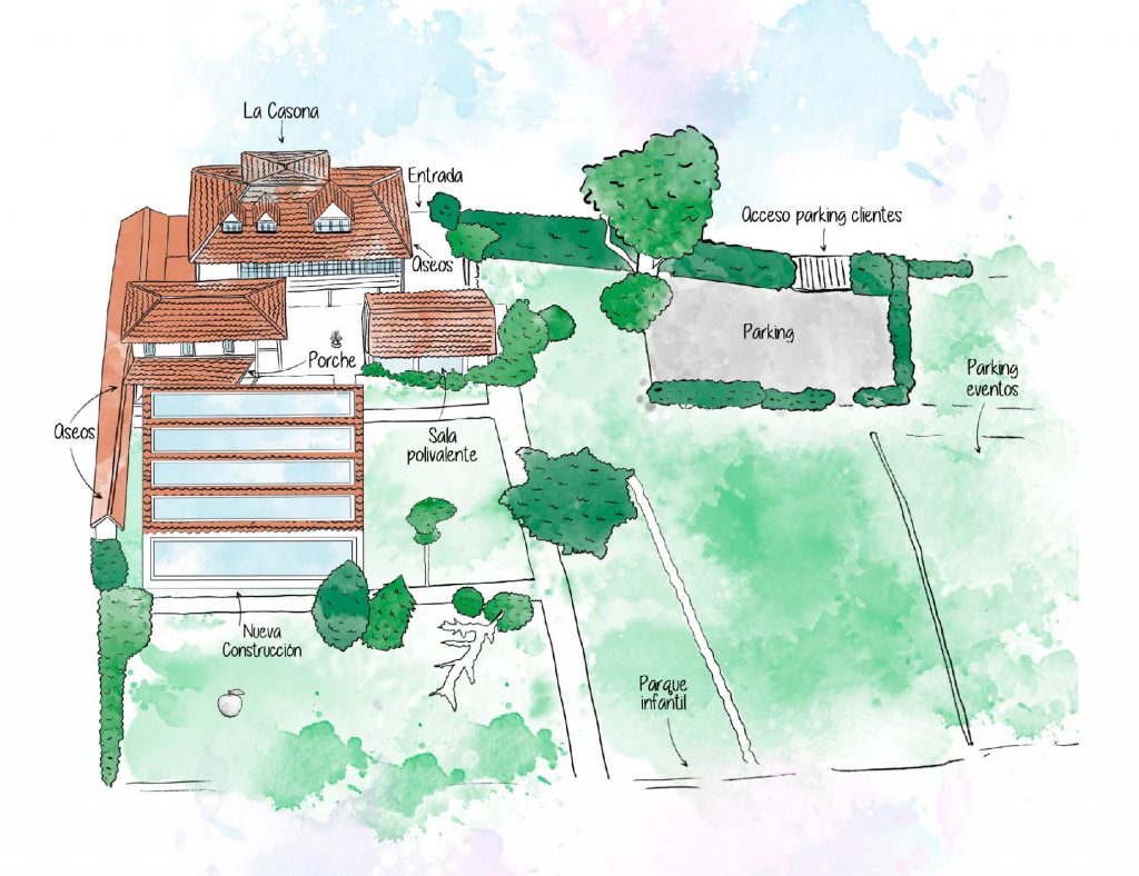 En un entorno único, la Casona de Amandi es un lugar mágico rodeado de verdes jardines, árboles centenarios y el murmullo del río Llinares que hace que nos olvidemos del mundanal ruido del día a día.